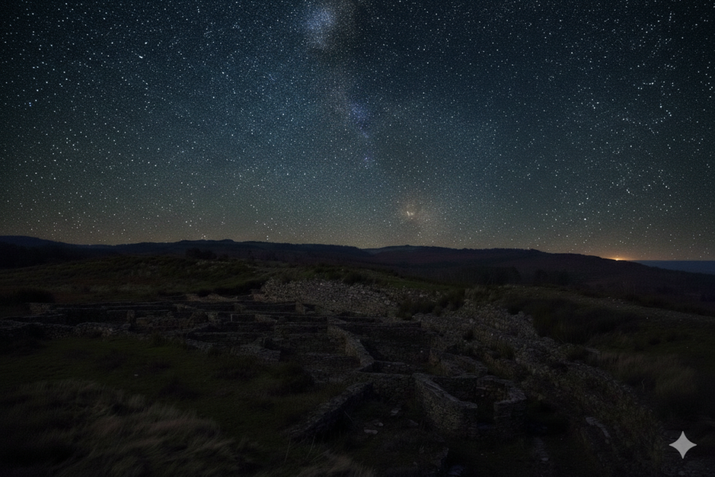 A pocos kilómetros de salir de Portomarín, el camino atraviesa uno de los yacimientos arqueológicos más importantes del noroeste peninsular: el Castro de Castromaior. Este poblado de la Edad del Hierro permite jugar con la profundidad de campo entre sus murallas concéntricas y el horizonte infinito de la Galicia interior. Es la oportunidad de capturar la sensación de caminar sobre milenios de historia.